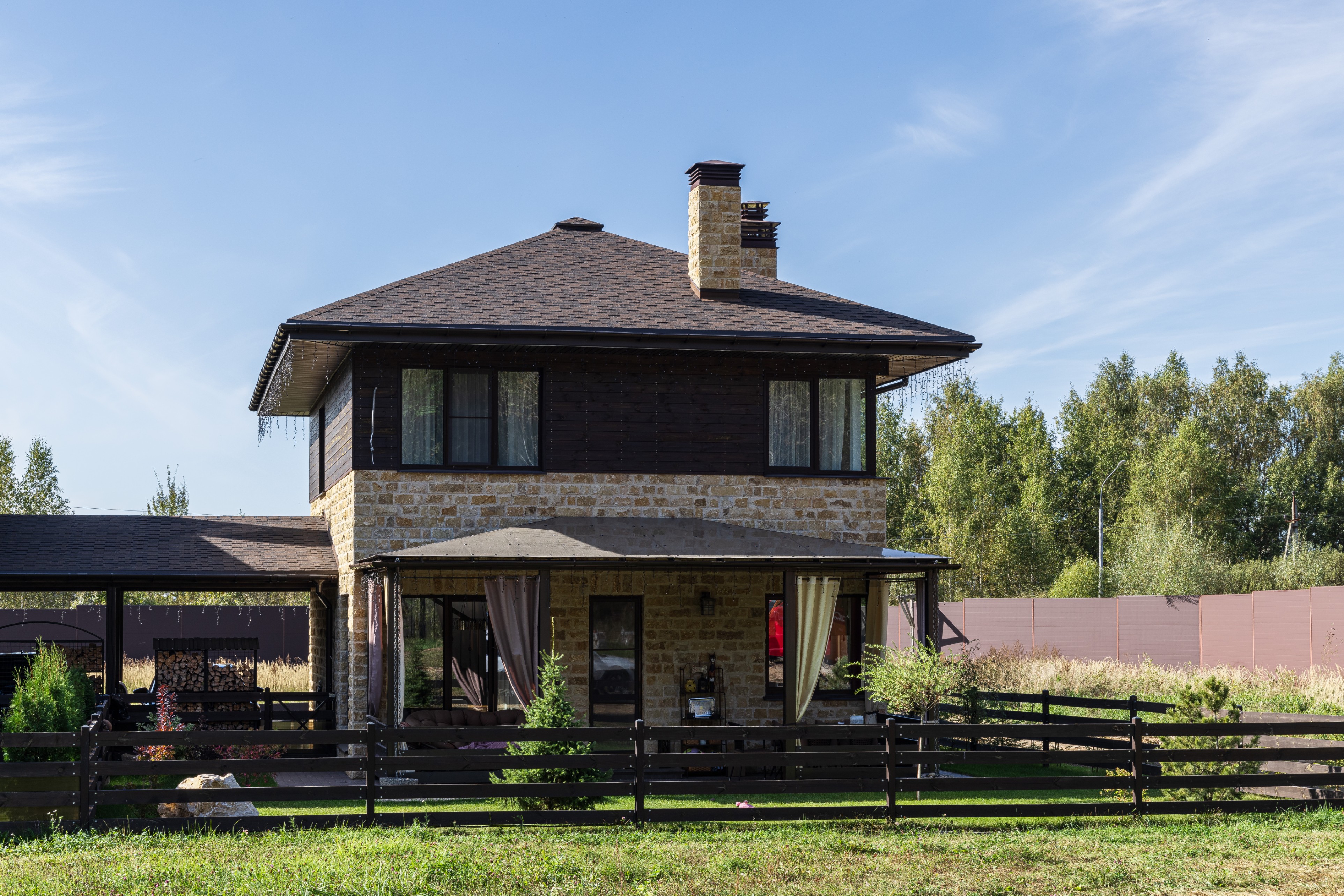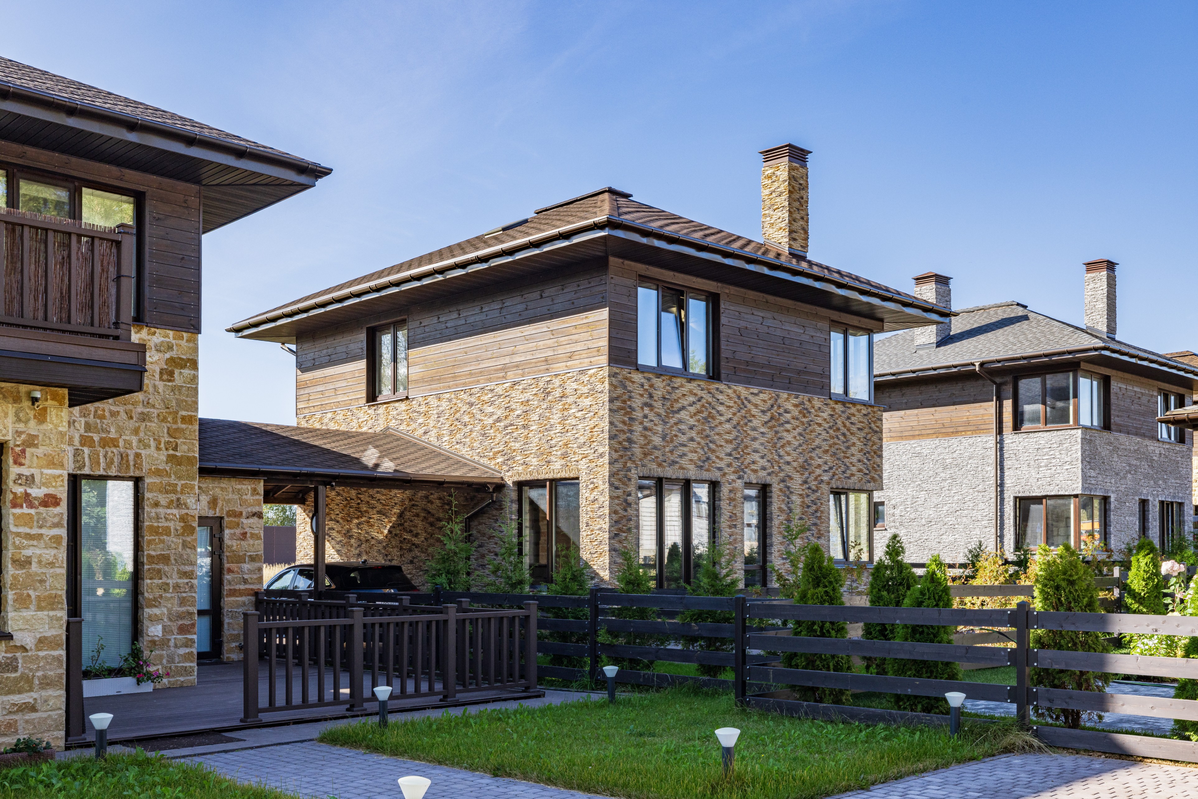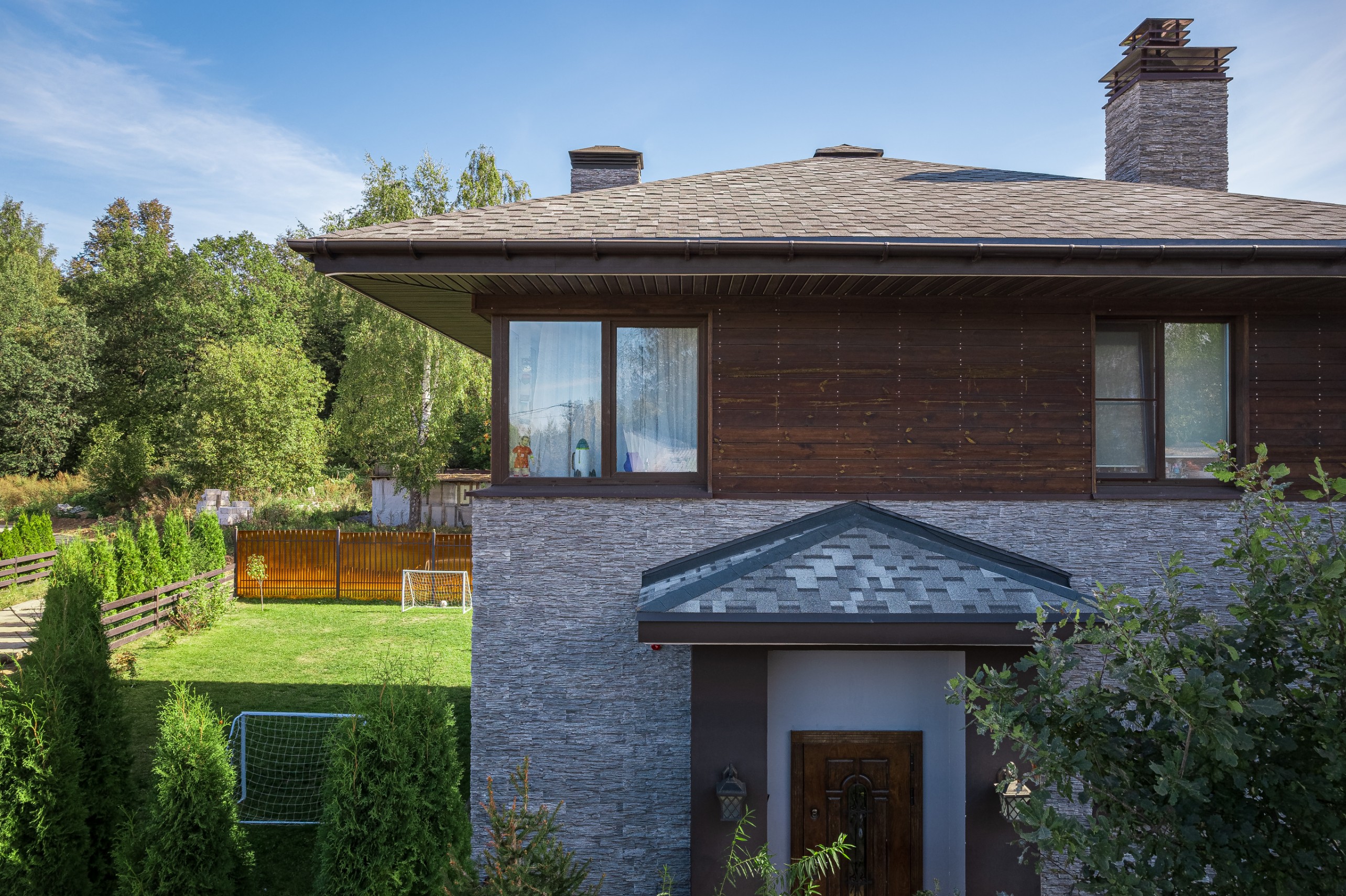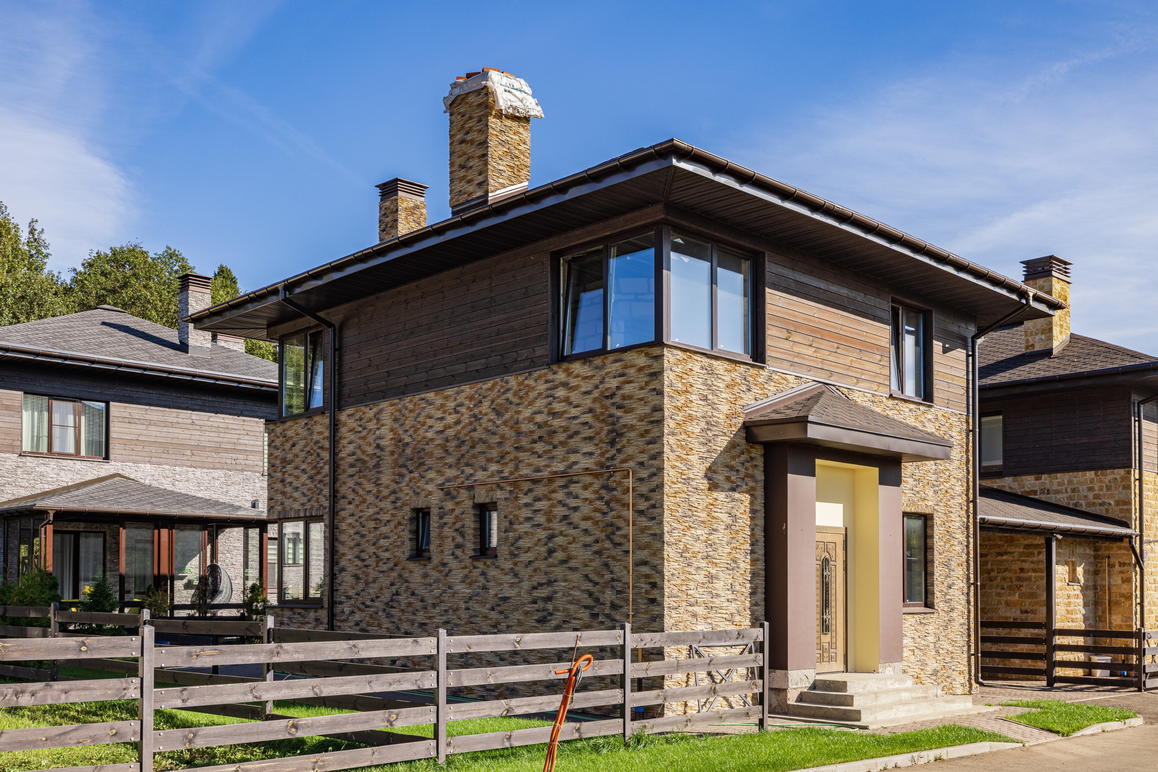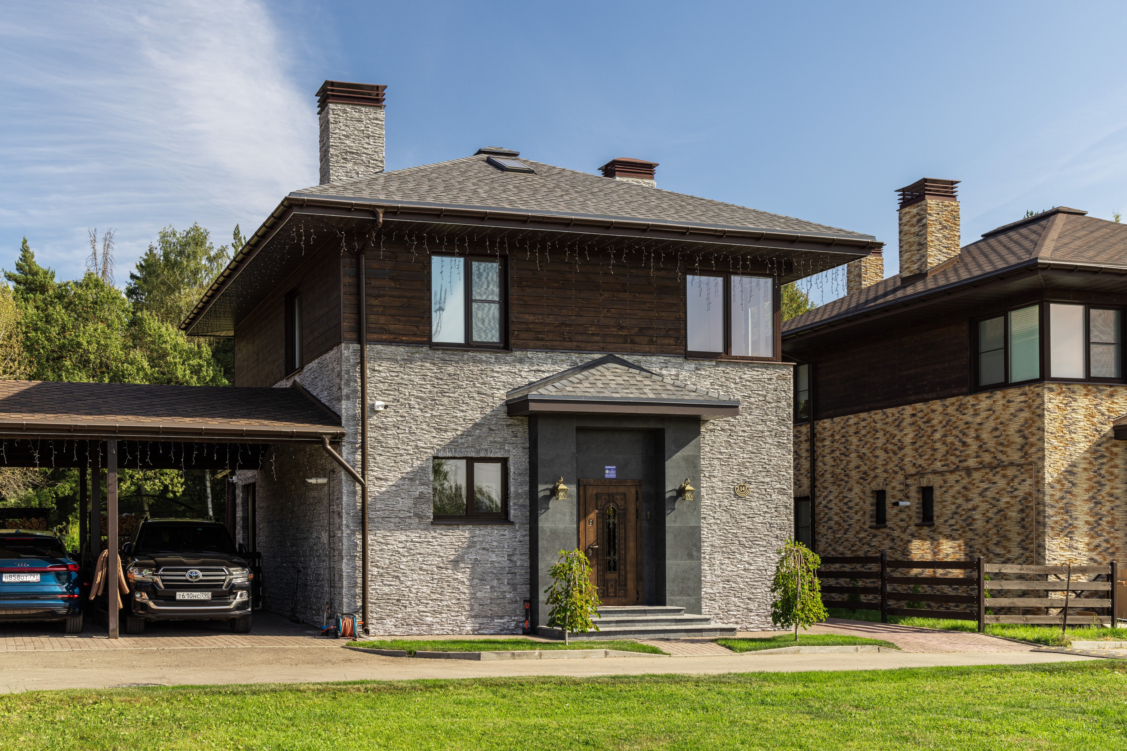 Облицовка: декоративный камень, дерево