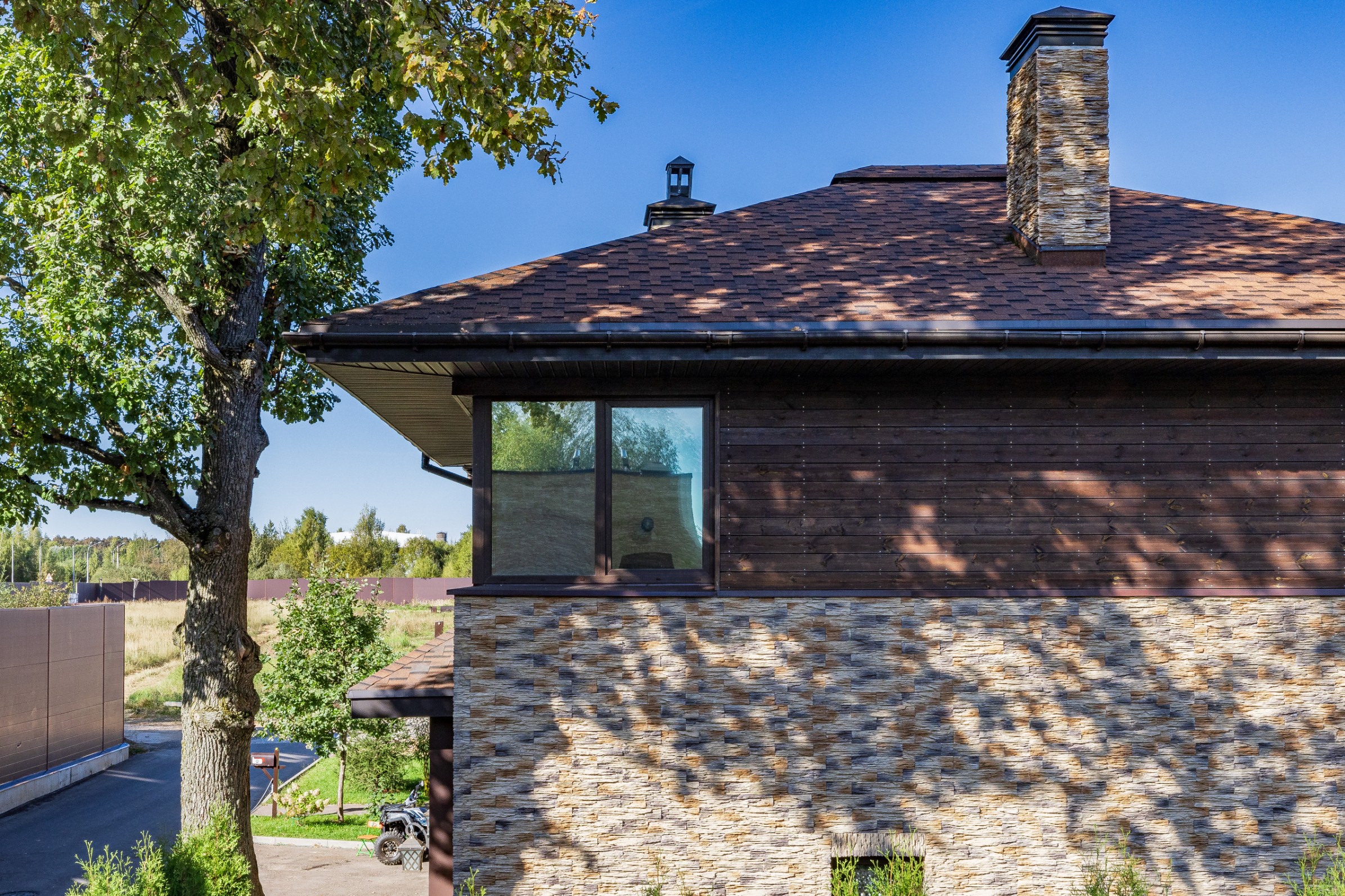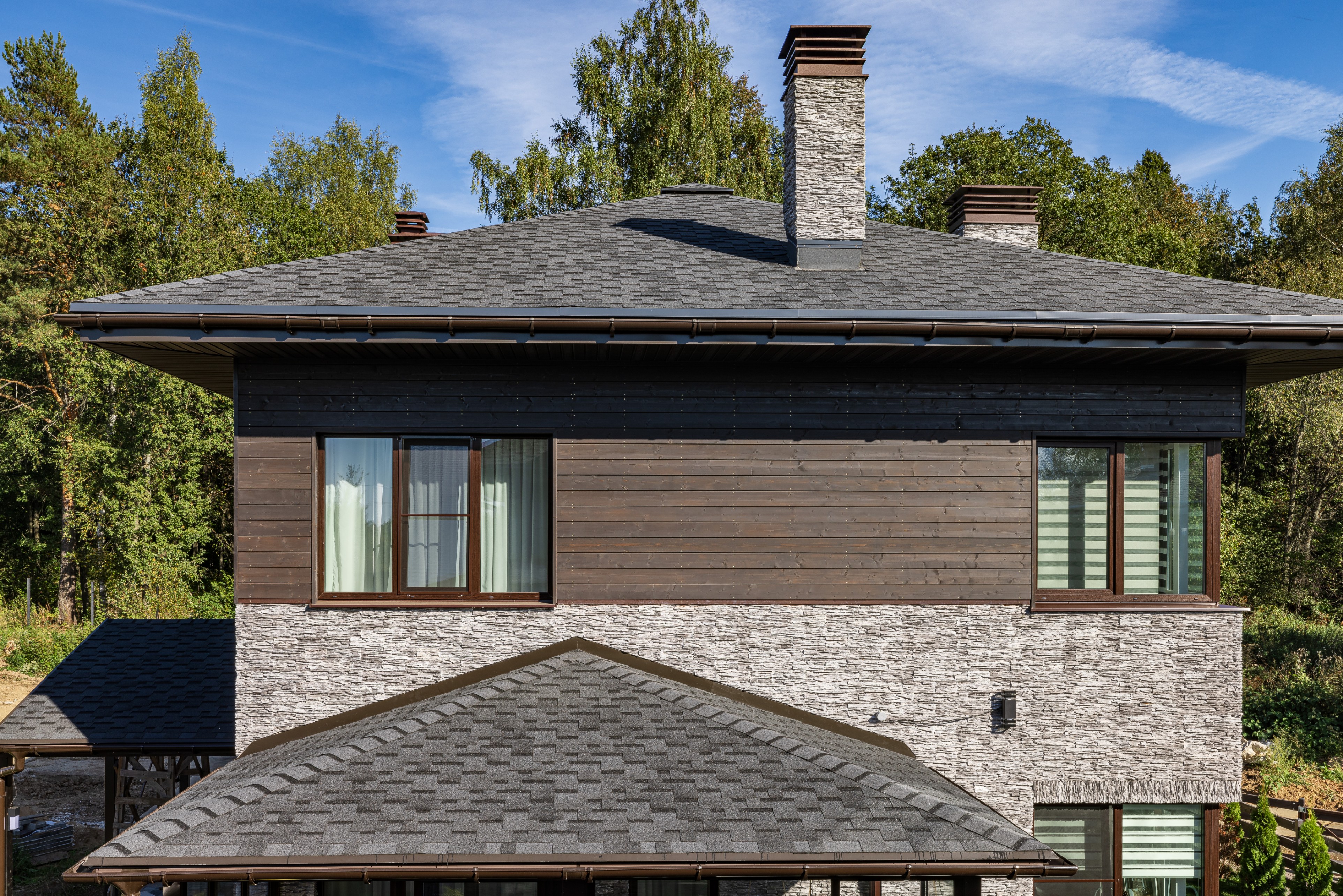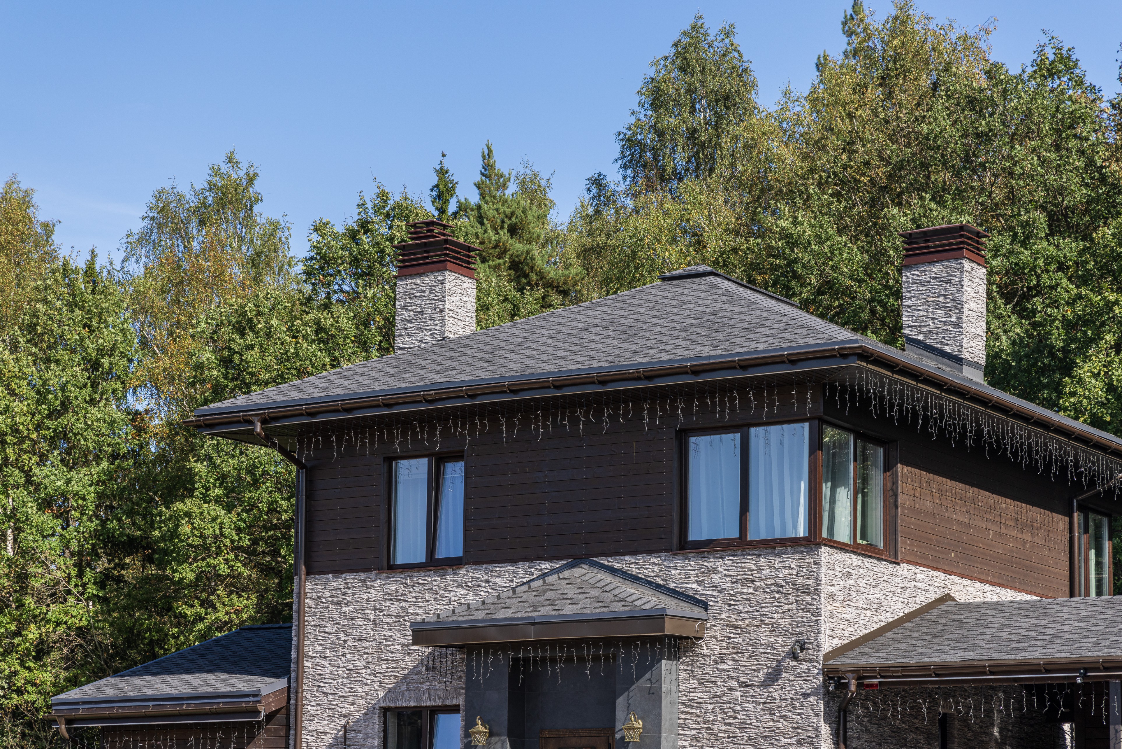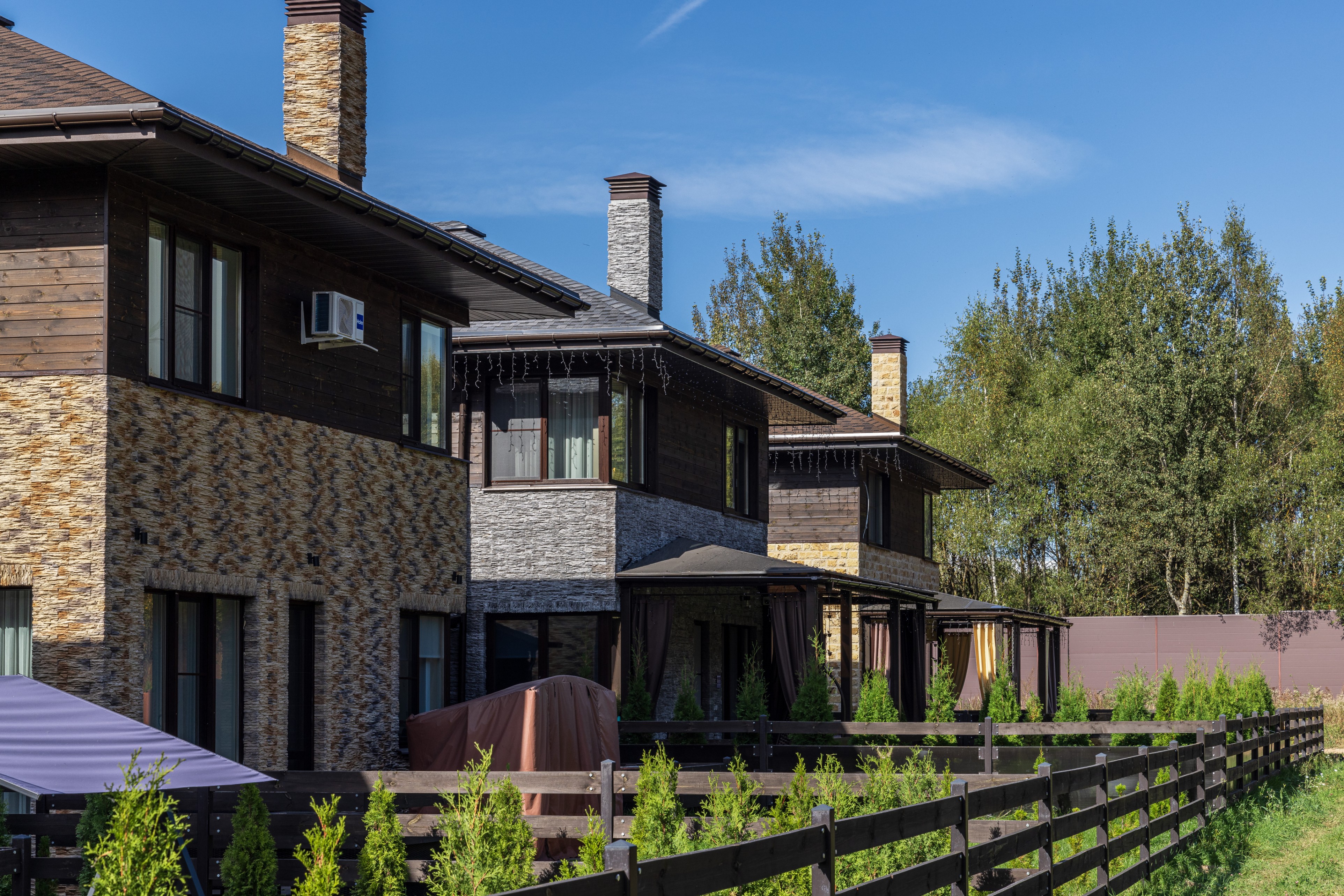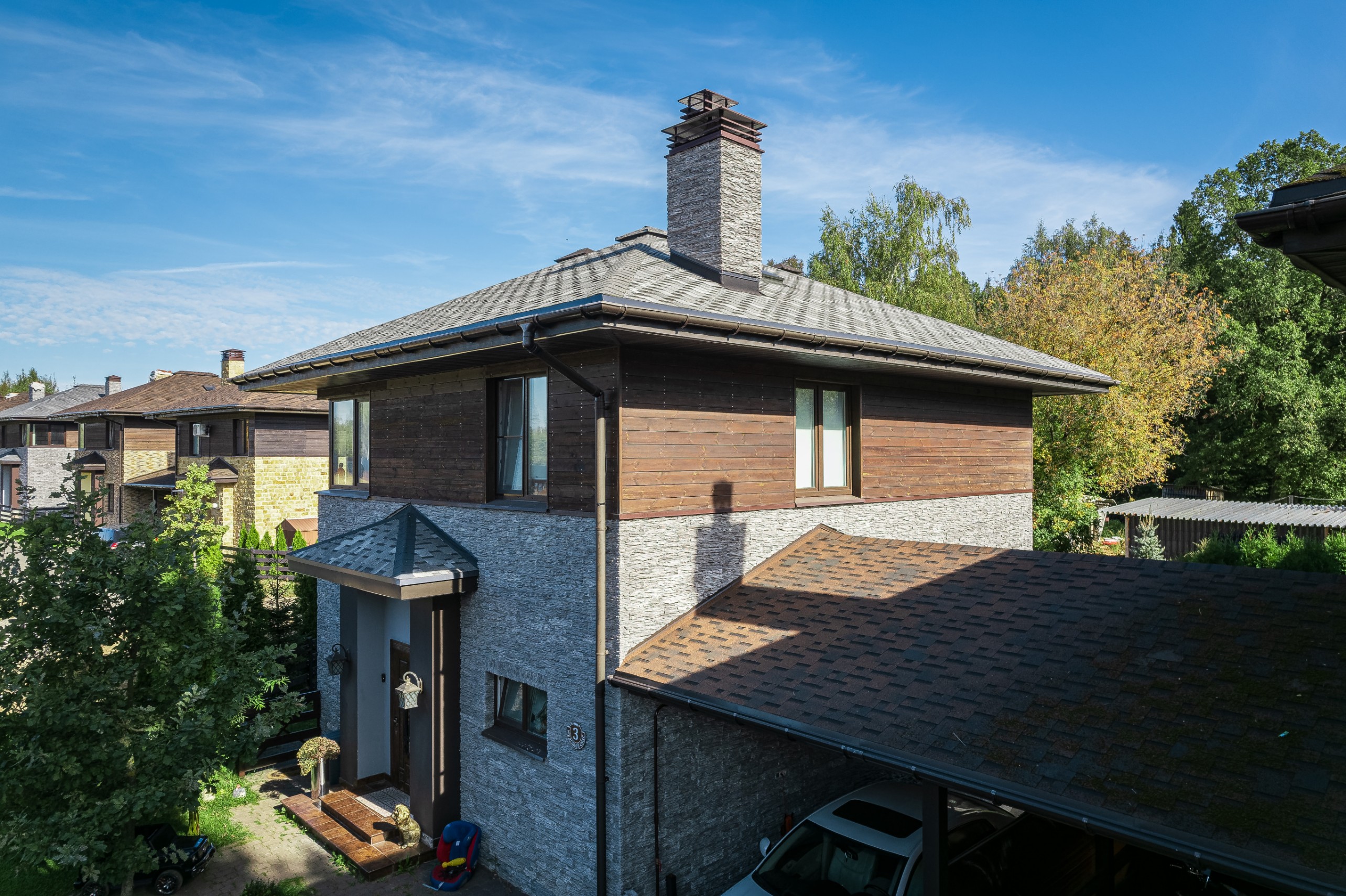 Облицовка: декоративный камень, дерево