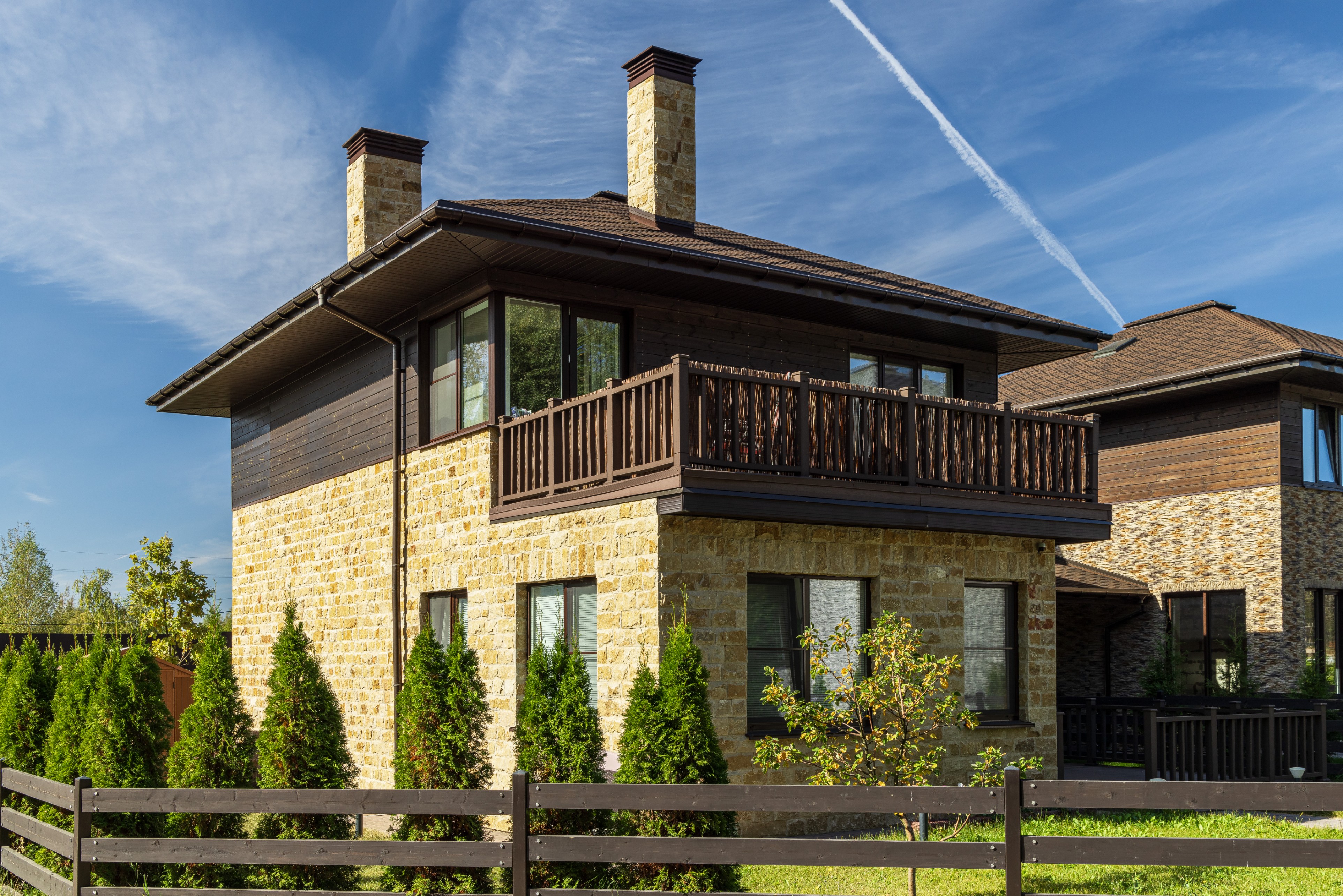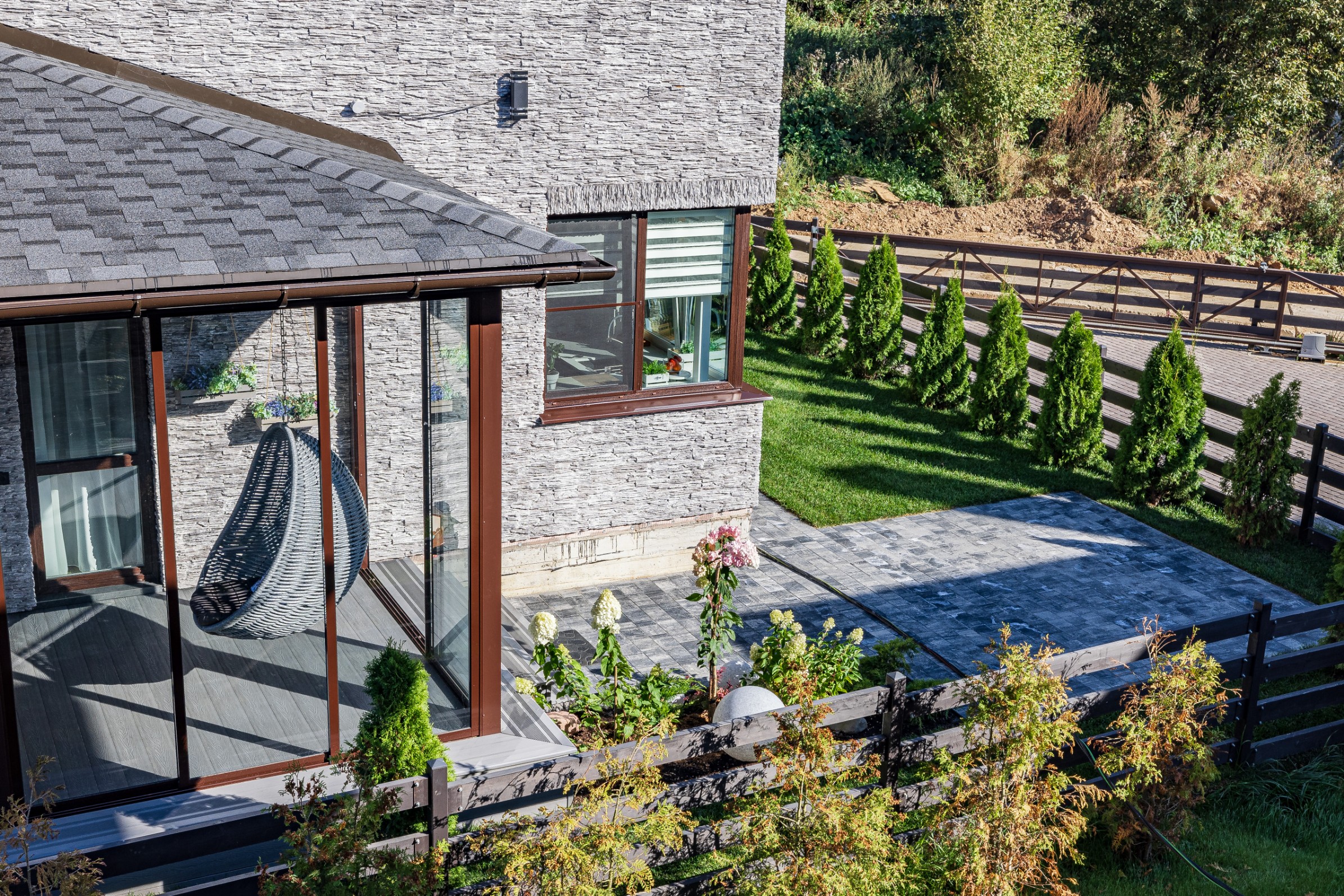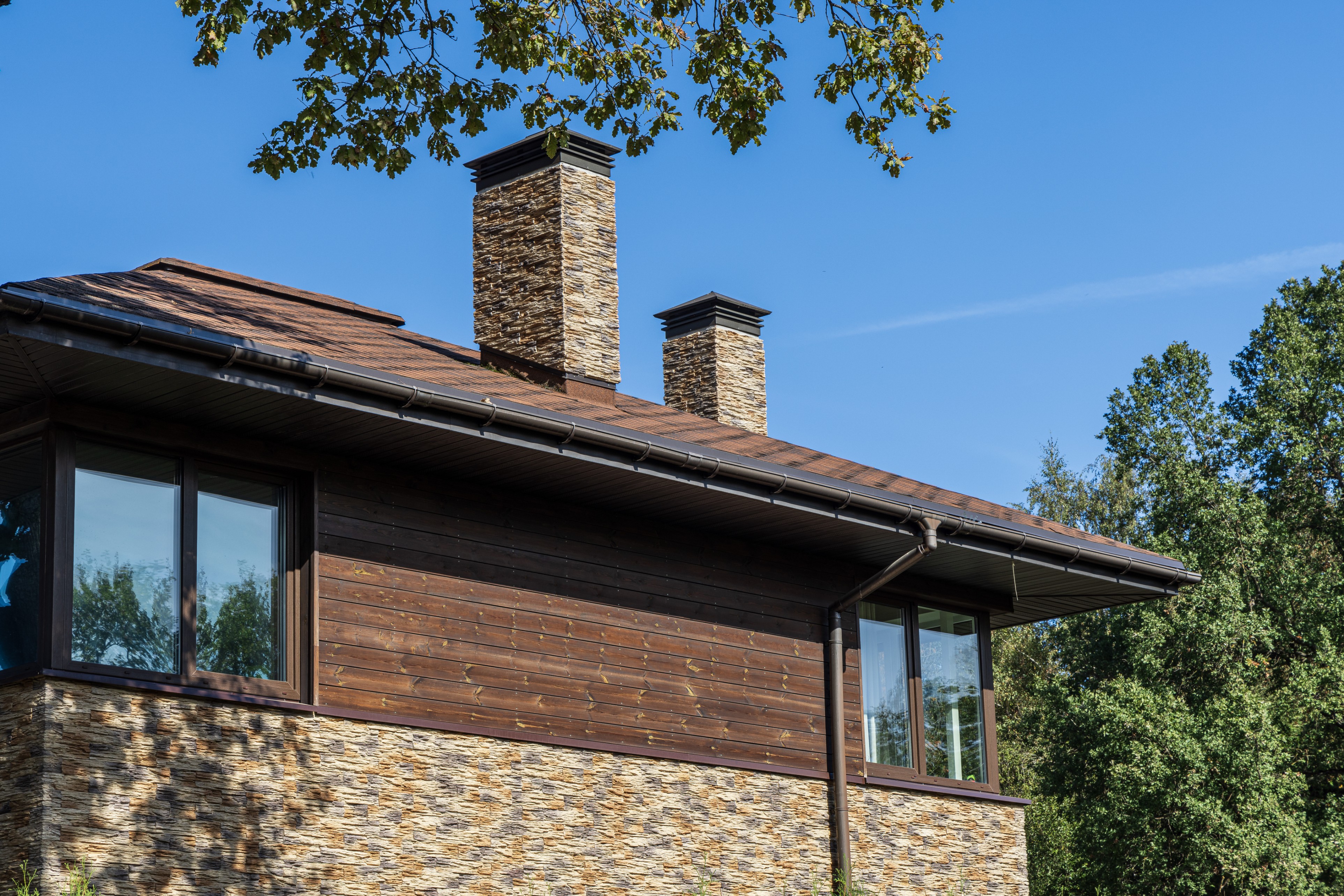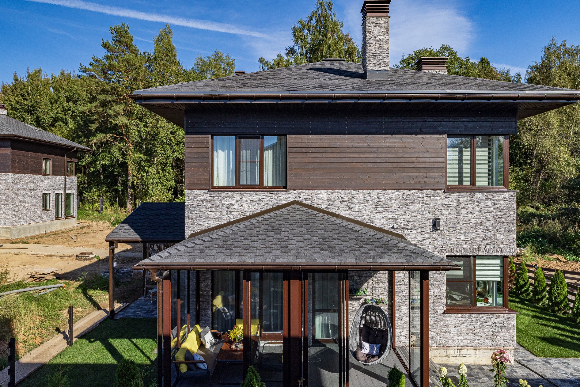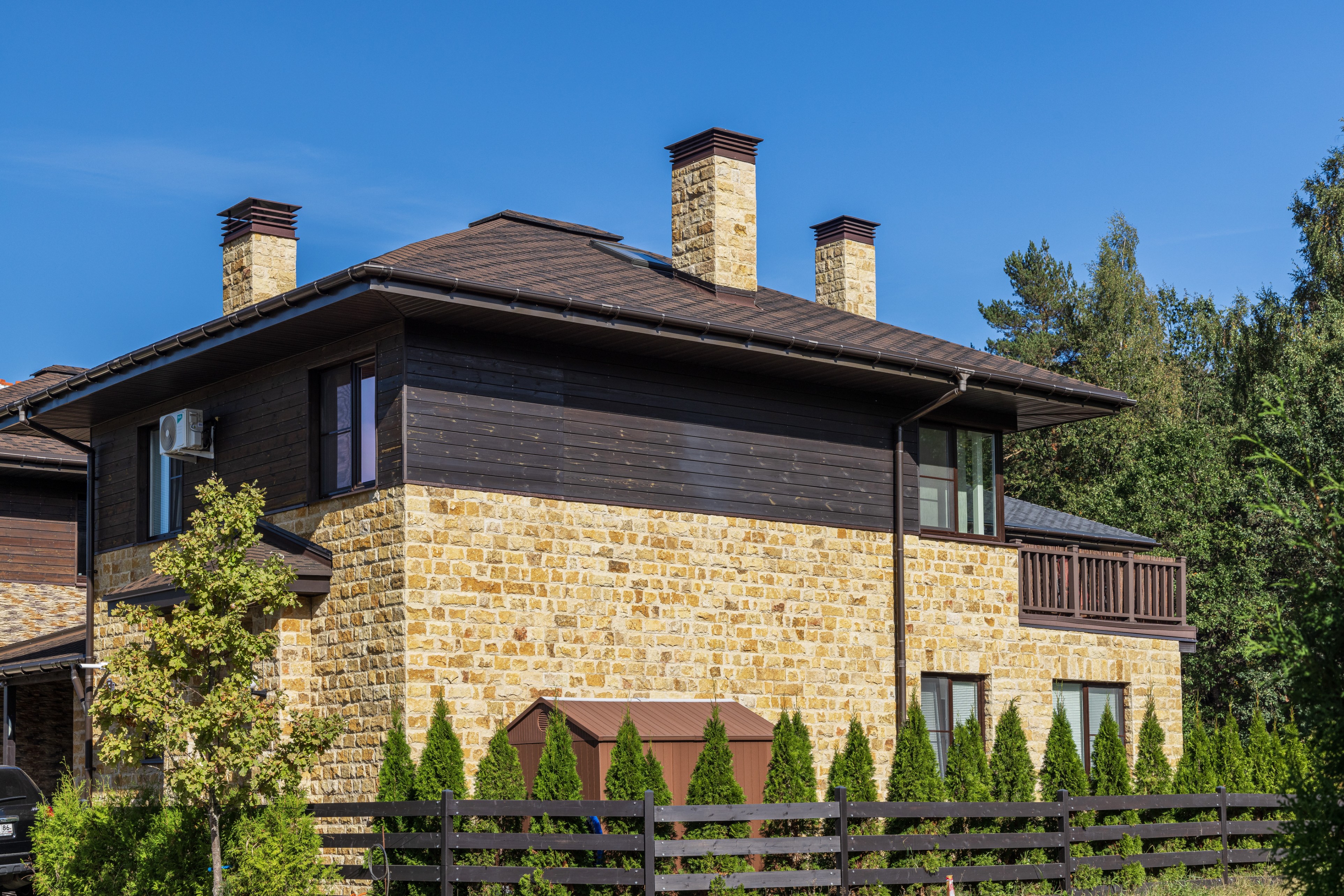 Облицовка: декоративный камень, дерево
