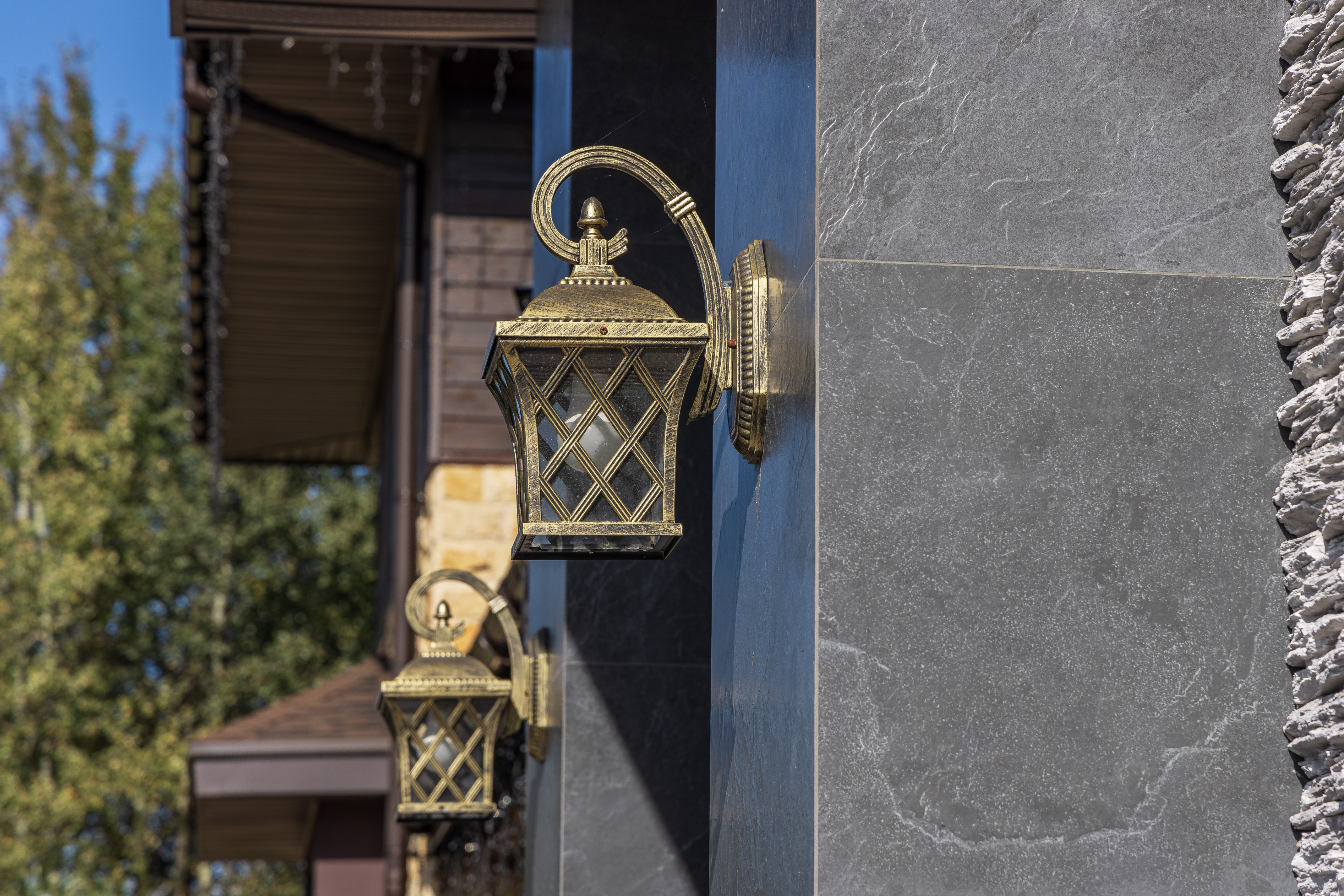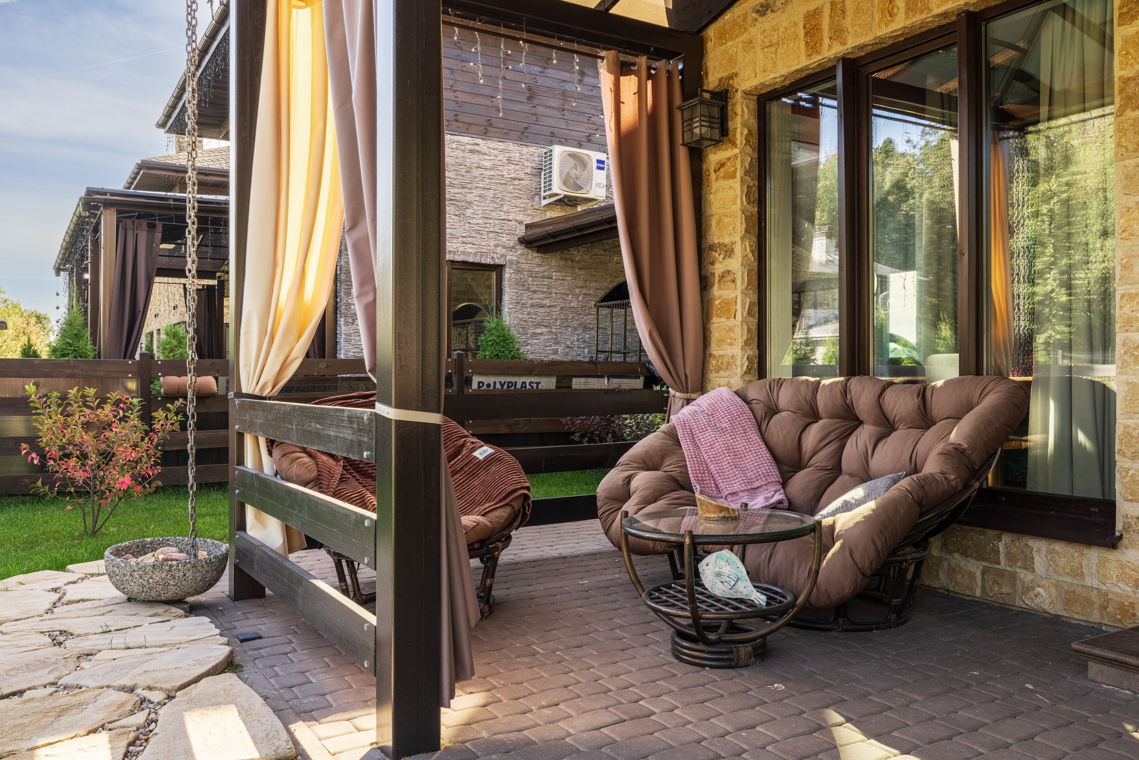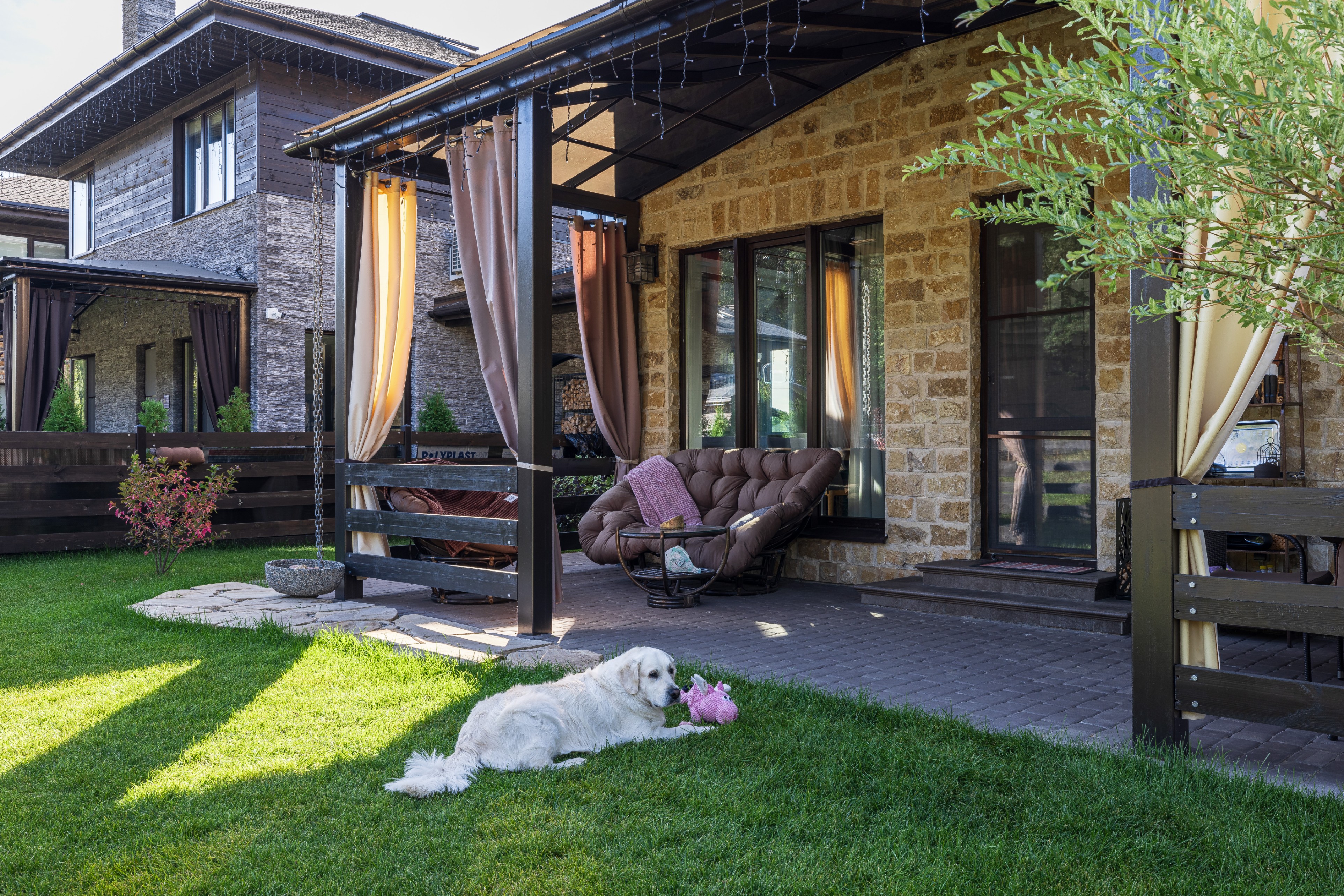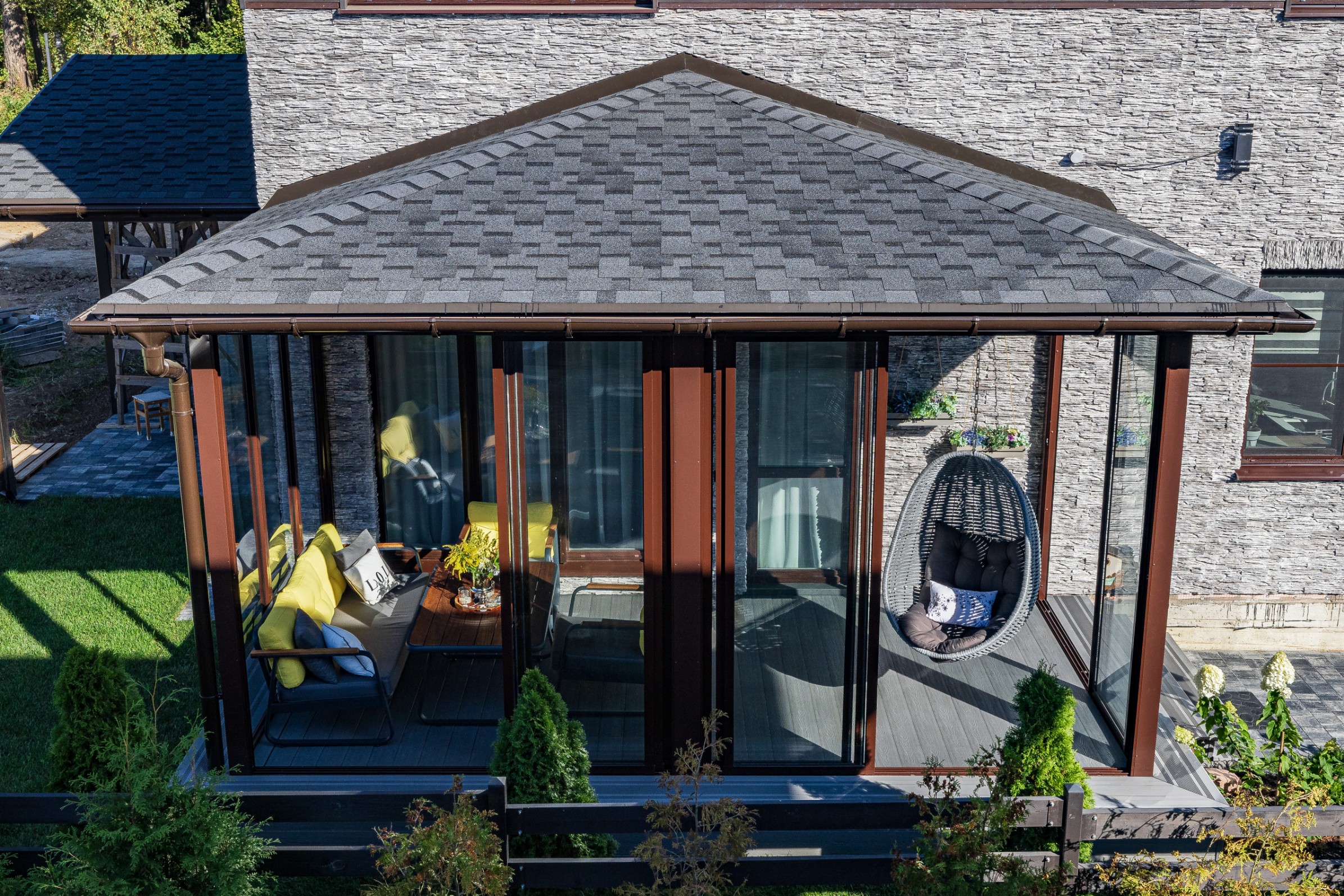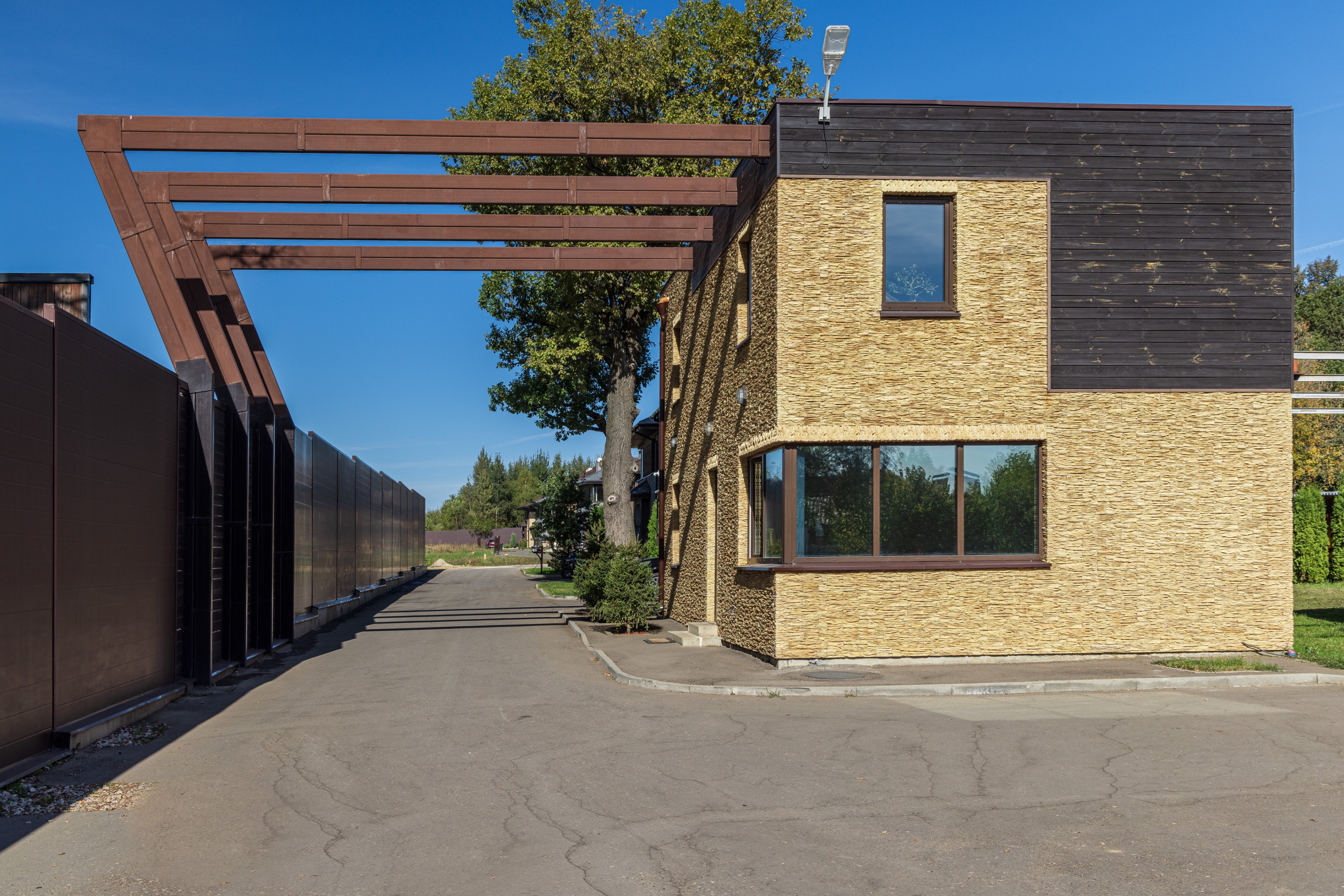 Облицовка: декоративный камень, дерево